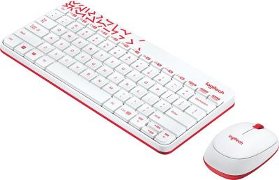 Беспроводные клавиатура + мышь Logitech MK240 Wireless Combo (бело-красный, USB, мембранная кл-ра, компактная кл-ра, оптическая мышь, 1000 dpi, RF 2.4
