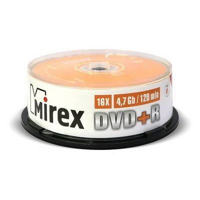 Диск DVD+R Mirex (4.7 GB, 16 x, Cakebox, 25 шт) [ UL130013A1M ]