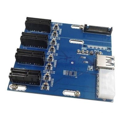 Переходник PCI Express 2.0 x1 1-to-4 [ LPE-41X ] (Без БП, черный, плата-разветвитель из 1 PCI-E x1 в 4 слота PCI-E x1, 1 x PCI-e power, 1 x Molex, 1 x