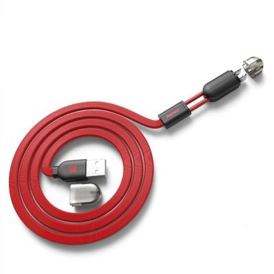 Кабель USB 2.0 Remax Gemini 2 in 1 (USB Type A (male) - microUSB Type B (male) + Lightning, 1.0 м, красный, защитный колпачок, магнитная сцепка, плоск
