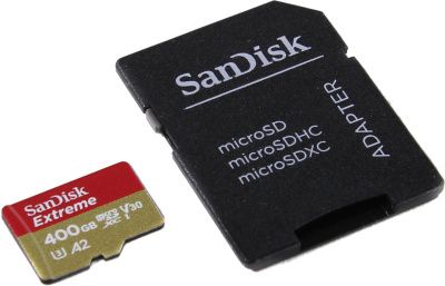 Флэш-карта microSDXC 400 GB SanDisk Extreme (Class UHS-I U3 / V30 / A2, 160 MB/s 90 MB/s SD адаптер. красно-золотой) [ SDSQXA1-400G-GN6MA ]